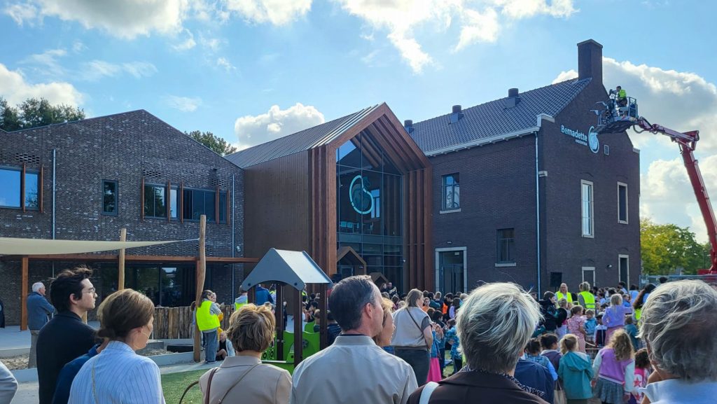 De Bernadetteschool in Veghel is vernieuwd. De nieuwe school is volop gefocust op verbinding: tussen oud en nieuw, park en wijk, dagopvang/psz en basisschool, én tussen alle kinderen en mensen binnen het kindcentrum.