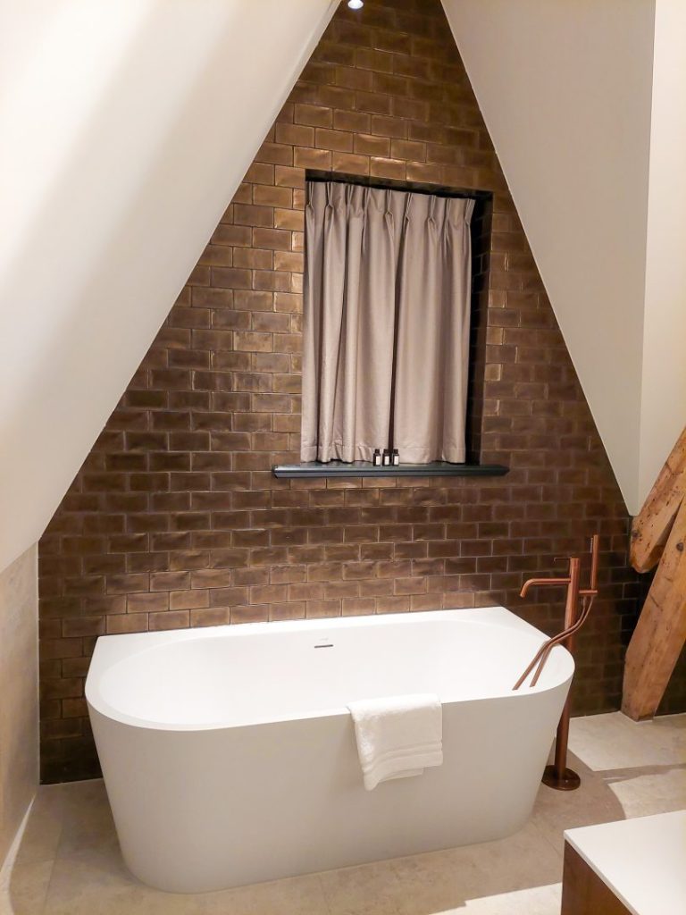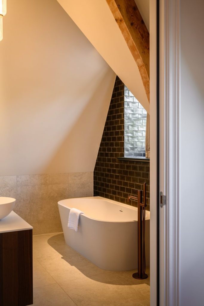 Zowel de gevels als het dak van het boetiekhotel wordt uitgevoerd met felsbanen. Met verder alleen aluminium kozijnen is het een sobere vorm. Ondanks, of juist door dit contrast, past het hotel bij het monumentale voorhuis.